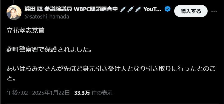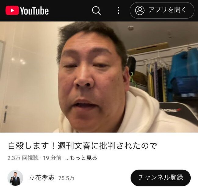 立花孝志、自殺予告し警察に保護される 2025年01月23日 カテゴリ:NHKから国民を守る党 1: それでも動く名無し 2025/01/22(水) 19:42:30.90 ID:SeeN9b6M0 自殺予告してた模様 (動画)https://video.twimg.com/amplify_video/1881979676643807232/vid/avc1/1920x1080/_E0bybrnodwbhXAH.mp4?tag=16 引用元:https://nova.5ch.net/test/read.cgi/livegalileo/1737542550/ 【立花孝志、自殺予告し警察に保護される】の続きを読む タグ :#NHK党#NHKから国民を守る党#立花孝志#週刊文春