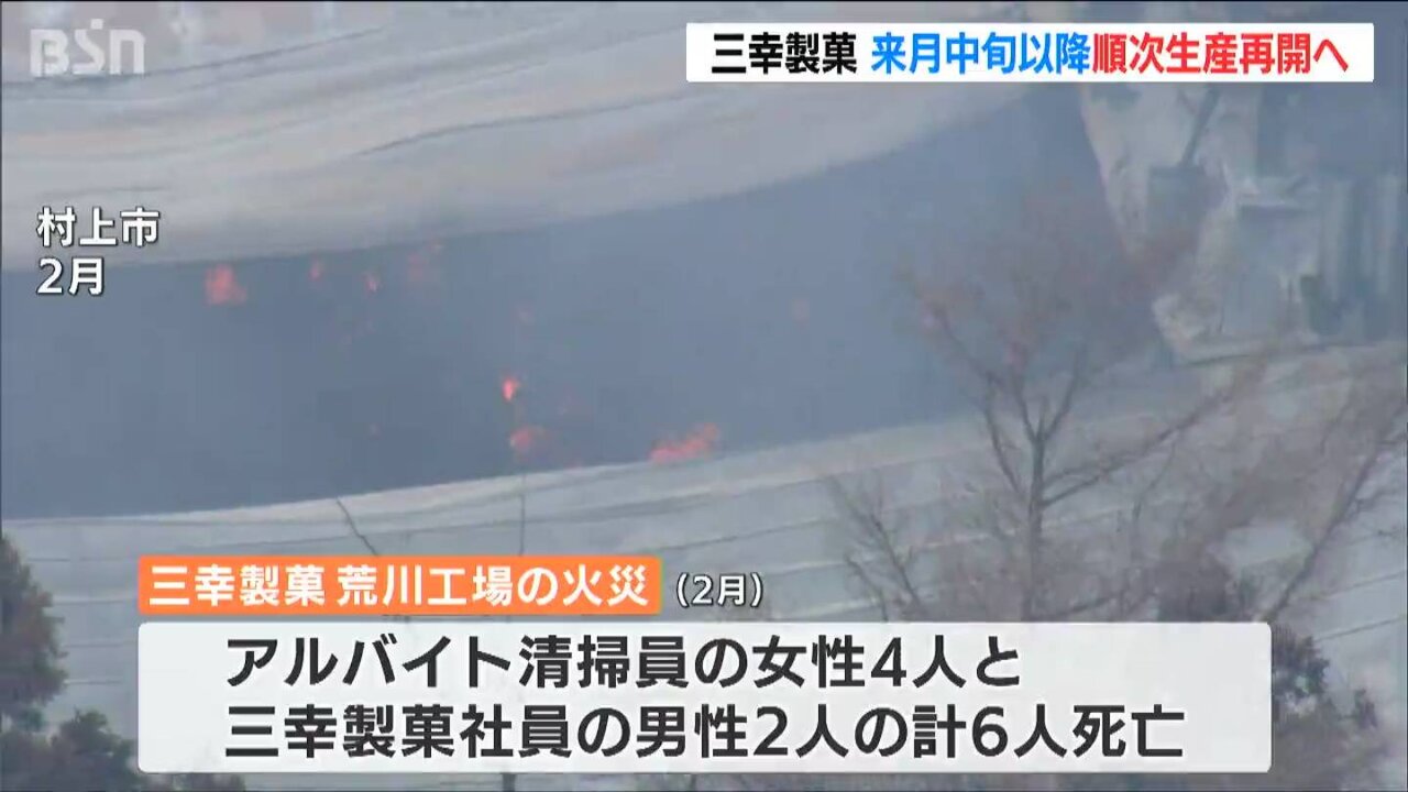 2月11日の深夜、村上市の三幸製菓荒川工場で起きた火災。パート従業員と社員あわせて6人が死亡しました。現在も出火原因はわかっていません。