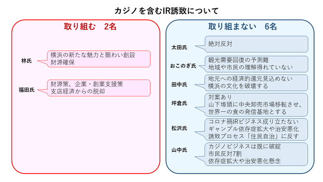 横山氏は「35年間で800億円の賃料を事業者から回収する。納付金が年間1千億円。入場料収入、インフラ負担金も含めるとかなりの収入が自治体に入ってくる」と反論した。