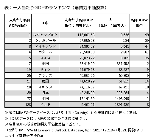 【悲報】ついに1人当たりGDPで日本が韓国に負けたというソースが見つかる 2021年08月14日 カテゴリ:経済韓国 1: 風吹けば名無し 2021/06/12(土) 14:13:16.54 ID:6gQHbLZA0 27位韓国 30位日本 あれだけ馬鹿にしてた国に抜かれる気分はいかがかな? 引用元:https://swallow.5ch.net/test/read.cgi/livejupiter/1623474796/ 【【悲報】ついに1人当たりGDPで日本が韓国に負けたというソースが見つかる】の続きを読む タグ :#IMF#一人当たりGDP#購買力平価#PPP#韓国経済#成長率#指標